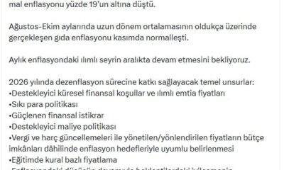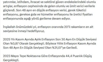 Hazine ve Maliye Bakanı Mehmet Şimşek, kasım ayı enflasyon verilerine ilişkin sosyal medya hesabından açıklama yaptı. Bakan Şimşek, “Son 2,5 yılın en düşük aylık enflasyonu gerçekleşti....
