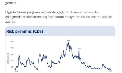Bakan Şimşek, sosyal medya hesabından yaptığı açıklamada, “Risk primimiz (CDS) 2018 yılı Mayıs ayından sonraki en düşük seviyesine geriledi. Uyguladığımız program sayesinde güçlenen finansal istikrar bu...