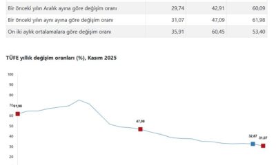 TÜİK, Kasım 2025 dönemine ilişkin enflasyon verilerini açıkladı. Buna göre; tüketici fiyatları 2025 yılı Kasım ayında bir önceki aya göre yüzde 0,87, bir önceki yılın aralık...