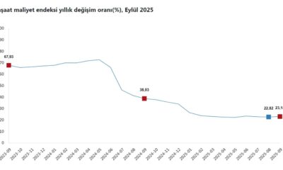 TÜİK, Eylül 2025 dönemine ilişkin inşaat maliyet endeksi verilerini açıkladı. Buna göre; inşaat maliyet endeksi, 2025 yılı eylül ayında bir önceki aya göre yüzde 0,87, bir...