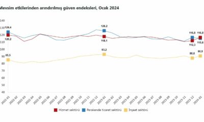TÜRKİYE İstatistik Kurumu (TÜİK), güven endeksinin hizmet sektöründe yüzde 4, inşaat sektöründe yüzde 3,3 arttığını, perakende ticaret sektöründe ise yüzde 1 azaldığını açıkladı. TÜİK, Ocak 2024...