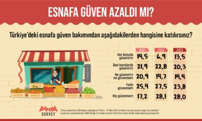 Araştırma şirketi Areda Survey, Türkiye genelinde 2 bin 384 kişinin katılımıyla esnaflık müessesesinin güven bakımından halktaki yansımasını araştırdı. Araştırmaya göre Türk halkının yüzde 51,8’inin esnafa güvenmediği...