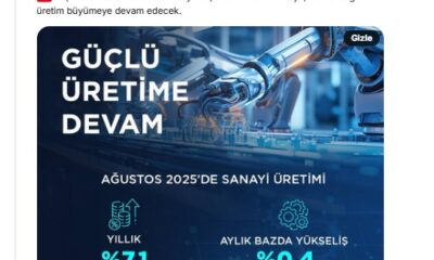 Sanayi ve Teknoloji Bakanı Mehmet Fatih Kacır, NSosyal hesabından ağustos ayı sanayi üretim endeksine ilişkin verileri değerlendirdi. Kacır, “Ağustos’ta sanayi üretim endeksi yıllık yüzde 7,1 artış...