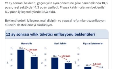 Bakan Şimşek, Türkiye Cumhuriyet Merkez Bankasının (TCMB) açıkladığı Eylül 2025 dönemine ilişkin sektörel enflasyon beklentileriyle ilgili değerlendirmede bulundu. Şimşek, sosyal medya hesabından yaptığı açıklamada, “Enflasyon beklentilerindeki...