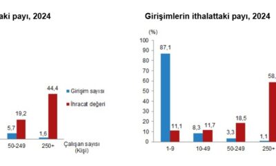 TÜİK, 2024 yılına ilişkin girişim özelliklerine göre dış ticaret istatistiklerini açıkladı. Buna göre; 2024 yılında 179 bin 673 girişim ihracat, 318 bin 603 girişim ithalat yaptı....