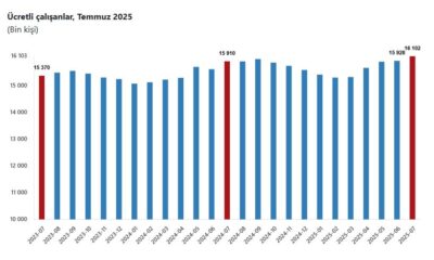 TÜİK, Temmuz 2025 dönemine ilişkin ücretli çalışan istatistiklerini açıkladı. Buna göre; sanayi, inşaat ve ticaret-hizmet sektörleri toplamında ücretli çalışan sayısı 2025 Temmuz ayında bir önceki yılın...