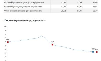 TÜİK, Ağustos 2025 dönemine ilişkin enflasyon verilerini açıkladı. Buna göre; tüketici fiyatları 2025 yılı Ağustos ayında bir önceki aya göre yüzde 2,04, bir önceki yılın aralık...
