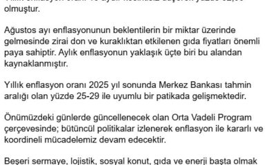 Temmuz ve ağustos ayı enflasyon verilerini değerlendiren Salih Oğuzhan Sever, “Temmuz ayında aylık bazda bir miktar bozulma bekliyorduk ve bu öngörümüz gerçekleşti. Ağustos ayında da benzer...