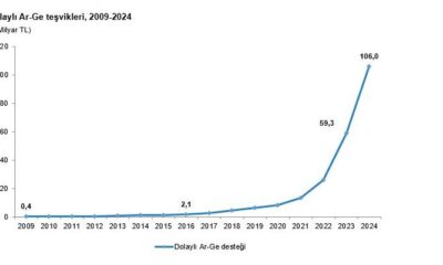 TÜİK, 2024 yılına ilişkin dolaylı Ar-Ge teşviklerini açıkladı. Buna göre; Ar-Ge faaliyetlerine yönelik toplam vergi teşviki 2023 yılında 59 milyar 332 milyon TL iken, yüzde 78,6...