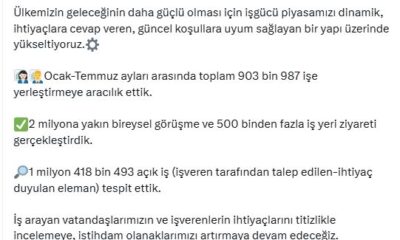 Çalışma ve Sosyal Güvenlik Bakanı Vedat Işıkhan, sosyal medya hesabından yaptığı açıklamada, “Ülkemizin geleceğinin daha güçlü olması için iş gücü piyasamızı dinamik, ihtiyaçlara cevap veren, güncel...