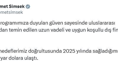 Hazine ve Maliye Bakanı Mehmet Şimşek, sosyal medya hesabından yaptığı açıklamada, “Ekonomi programımıza duyulan güven sayesinde uluslararası kuruluşlardan temin edilen uzun vadeli ve uygun koşullu dış...