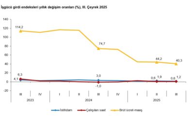 TÜİK, 3üncü çeyrek iş gücü girdi istatistiklerini açıkladı. Buna göre; sanayi, inşaat ve ticaret-hizmet sektörleri toplamında istihdam endeksi, 2025 yılı Temmuz-Eylül aylarından oluşan 3üncü çeyreğinde bir...