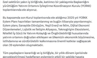 Cumhurbaşkanı Yardımcısı Cevdet Yılmaz, sosyal medya hesabından yaptığı açıklamada, Türkiyenin yatırım ortamının daha öngörülebilir, rekabetçi ve yatırımcı dostu yapısının güçlenmesi hedefi doğrultusunda çalışmalarına hız kesmeden devam...