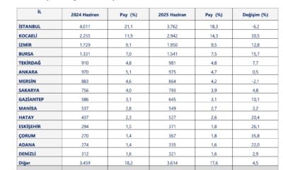 Bakanlıktan yapılan yazılı açıklamada, 2025 yılı haziran ayında faaliyet illeri bazında ihracatta İstanbulun 3 milyar 762 milyon dolar ile 1inci, Kocaelinin 2 milyar 942 milyon dolar...