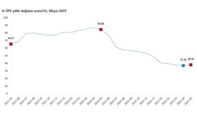 TÜİK, H-ÜFE Mayıs 2025 verilerini açıkladı. Buna göre, H-ÜFE, 2025 yılı mayıs ayında bir önceki aya göre yüzde 2,37 artış, bir önceki yılın aralık ayına göre...