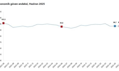 TÜİK, Haziran 2025 dönemine ilişkin ekonomik güven endeksi verilerini açıkladı. Buna göre; ekonomik güven endeksi haziran ayında bir önceki aya göre yüzde 0,1 oranında artarak 96,71...