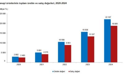 TÜİK, 2024 yılına ilişkin yıllık sanayi ürün istatistiklerini açıkladı. Buna göre; Türkiyede 2024 yılında 1 milyon 169 bin 17 otomobil, 9 milyon 392 bin 251 ev...