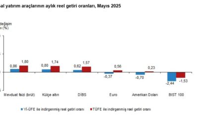 TÜİK, Mayıs 2025 dönemine ilişkin finansal yatırım araçlarının reel getiri oranlarını açıkladı. Buna göre; aylık en yüksek reel getiri, yurt içi üretici fiyat endeksi (Yİ-ÜFE) ile...