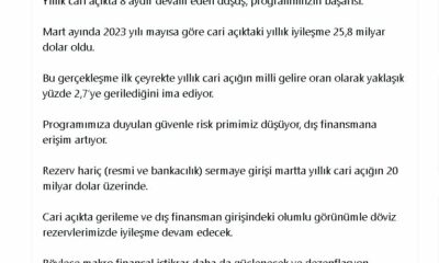Hazine ve Maliye Bakanı Mehmet Şimşek, Ticaret Bakanlığı tarafından açıklanan cari işlemler açığı verilerine ilişkin sosyal medya hesabından yaptığı açıklamada, “Yıllık cari açıkta 8 aydır devam...