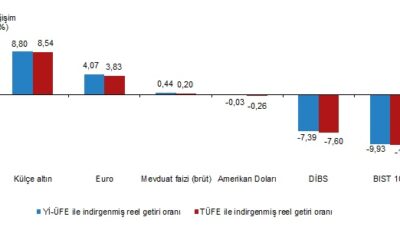 TÜİK, Nisan 2025 dönemine ilişkin finansal yatırım araçlarının reel getiri oranlarını açıkladı. Buna göre; aylık en yüksek reel getiri, yurt içi üretici fiyat endeksi (Yİ-ÜFE) ile...