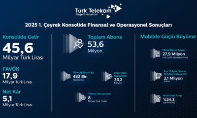 Türk Telekom, 2025 yılı birinci çeyrek finansal ve operasyonel sonuçlarını açıkladı. Böylece konsolide gelirleri yıllık bazda yüzde 18,3’lük artışla 45,6 milyar TL’ye yükseldi. FAVÖK’ü (Faiz, amortisman...