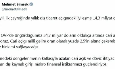 HAZİNE ve Maliye Bakanı Mehmet Şimşek, bu yıl Orta Vadeli Programda (OVP) öngörülen 34,7 milyar doların oldukça altında bir cari açık beklediklerini açıkladı.Bakan Şimşek, sosyal medya...