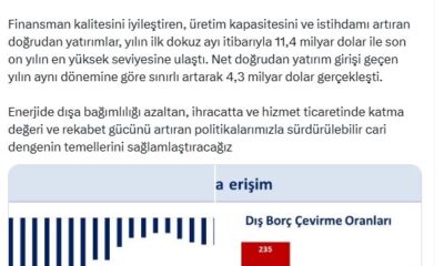 Bakan Şimşek, Türkiye Cumhuriyet Merkez Bankasının (TCMB) açıkladığı eylül ayına ilişkin ödemeler dengesi istatistikleriyle ilgili değerlendirmede bulundu. Şimşek, sosyal medya hesabından yaptığı açıklamada, “Eylülde yıllık cari...