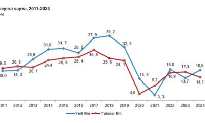 TÜİK, 2024 yılına ilişkin sinema ve gösteri sanatları istatistiklerini açıkladı. Buna göre; 2024 yılında 295i yerli 441i yabancı film olmak üzere toplam 736 filmin vizyona girdi....