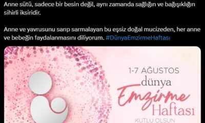 Emine Erdoğan, sosyal medya hesabından yaptığı paylaşımda, “Emzirme, bir annenin kalbinden doğup bebeğinin ruhuna işleyen en saf sevgidir. Anne sütü, sadece bir besin değil, aynı zamanda...
