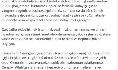 Bahçeli, sosyal medya hesabından yaptığı açıklamada, “Orman yangınlarıyla amansız mücadele sürerken adeta ciğerlerimiz yanıp kavruluyor. Yurdumuzun farklı bölgelerinde çıkan yangınlara anında ve kararlılıkla müdahale ediliyor. Devletin...