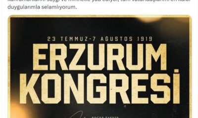 Cumhurbaşkanı Erdoğan, 23 Temmuz 1919 Erzurum Kongresinin 106ncı yıl dönümü nedeniyle sosyal medya hesabından bir mesaj yayımladı. Erdoğan, mesajında, “Aziz milletimizin özgürlük yolundaki azim ve kararlılığını...
