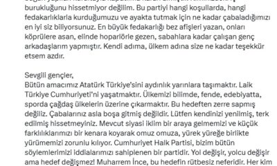 Memleket Partisi kurucusu ve eski Genel Başkanı Muharrem İnce, kurultay sonrası sosyal medya hesabından yaptığı açıklamada, “Olağanüstü koşullarda, kısıtlı imkanlarla kurduğumuz Memleket Partisi bugün yapılan kurultayla...