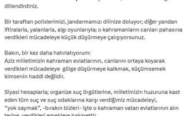 İçişleri Bakanı Ali Yerlikaya, sosyal medya hesabından yaptığı açıklamada, CHP Genel Başkanı Özgür Özelin Zonguldak mitinginde kendisi ile ilgili söylediği sözlere yanıt verdi. Bakan Yerlikaya, “Yalan...