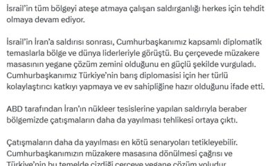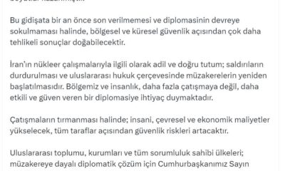 Bakanlıktan yapılan yazılı açıklamada, “Türkiye olarak, bölgede İsrail saldırganlığıyla başlayan çatışmanın yayılması ve güvenlik ortamının istikrarsızlaşması riskine her vesileyle dikkat çekmiştik. İran’ın nükleer tesislerine ABD tarafından...