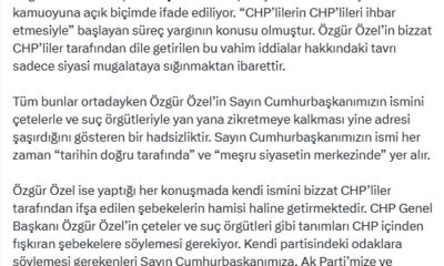 AK Partili Çelik, sosyal medya hesabından yaptığı açıklamada, “CHP Genel Başkanı Özgür Özel’in partisinden fışkıran skandalları ve yolsuzlukları örtbas etmeye uğraşmaktan başka bir siyasi faaliyeti yok....