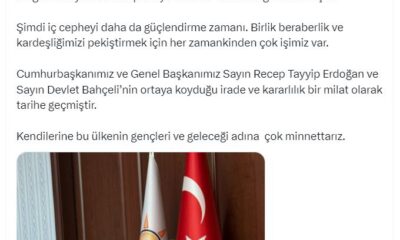 AK Parti Sözcüsü Çelik, sosyal medya hesabından yaptığı açıklamada, “Sayın Cumhurbaşkanımızın Terörsüz Türkiye için ortaya koyduğu yüksek siyasi iradesi ve sürecin koordinatlarını devlet politikası olarak çizen...