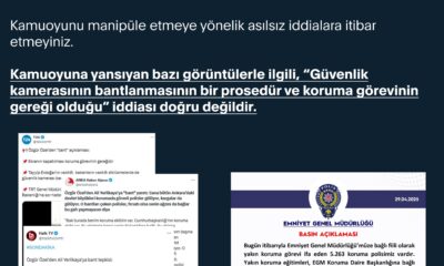 DMMnin sosyal medya hesabından yapılan açıklamada, “Kamuoyuna yansıyan bazı görüntülerle ilgili, Güvenlik kamerasının bantlanmasının bir prosedür ve koruma görevinin gereği olduğu iddiası doğru değildir. Emniyet Genel...