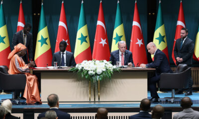 Cumhurbaşkanı Recep Tayyip Erdoğan, Türkiyeye resmi ziyarette bulunan Senegal Cumhurbaşkanı Bassirou Diomaye Faye ile baş başa ve heyetler arası görüşmenin ardından Cumhurbaşkanlığı Külliyesinde anlaşmaların imza töreni...