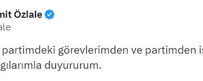 Ümit Özlale, sosyal medya hesabından yaptığı açıklamada, “Bugün itibarıyla partimdeki görevlerimden ve partimden istifa ettiğimi kamuoyuna saygılarımla duyururum” dedi.