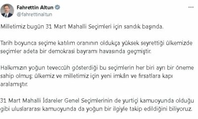 İLETİŞİM Başkanı Fahrettin Altun, dezenformasyonla mücadeleyi kararlılıkla sürdürdüklerini belirterek, “31 Mart seçimleri için de gerekli bütün hazırlıklarımızı yapmış bulunuyoruz. Katılım oranlarıyla adeta bir demokrasi şöleni olan...