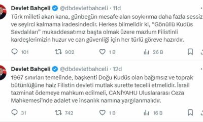 MHP Genel Başkanı Devlet Bahçeli, İsrail’in Gazze’ye yönelik saldırılarına ilişkin, “İsrail tazminat ödemeye mahkum edilmeli, ‘Caniyahu’ Uluslararası Ceza Mahkemesi’nde adalet ve insanlık namına yargılanmalıdır. Türk milleti...