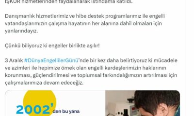 ÇALIŞMA ve Sosyal Güvenlik Bakanı Vedat Işıkhan, Türkiye İş Kurumu (İŞKUR) aracılığıyla 2002 yılından bugüne 463 bin 270 engelli vatandaşın işe yerleştirildiğini açıkladı. Bakan Işıkhan, ‘3 Aralık...