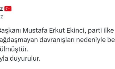 MHPli Durmaz, sosyal medya hesabından yaptığı açıklamada, “Sorgun Belediye Başkanı Mustafa Erkut Ekinci, parti ilke ve politikalarımızla bağdaşmayan davranışları nedeniyle belediye başkanları listemizden düşürülmüştür” ifadelerini kullandı....