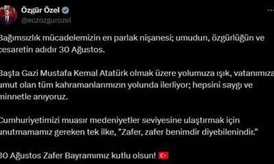 CHP Genel Başkanı Özel, sosyal medya hesabından yaptığı paylaşımda, “Bağımsızlık mücadelemizin en parlak nişanesi; umudun, özgürlüğün ve cesaretin adıdır 30 Ağustos. Başta Gazi Mustafa Kemal Atatürk...