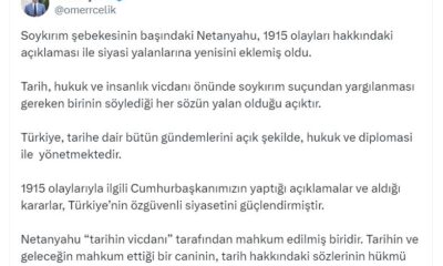 AK Parti Sözcüsü Çelik, sosyal medya hesabından yaptığı açıklamada, “Soykırım şebekesinin başındaki Netanyahu, 1915 olayları hakkındaki açıklaması ile siyasi yalanlarına yenisini eklemiş oldu. Tarih, hukuk ve...