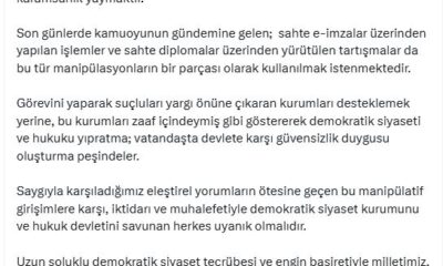 Cumhurbaşkanı Yardımcısı Cevdet Yılmaz, sahte e-imza soruşturması üzerinden yürütülen tartışmalara ilişkin sosyal medya hesabından açıklama yaptı. Yılmaz, “Enformasyon çağı, maalesef aynı zamanda dezenformasyon çağıdır. Özellikle sınır...