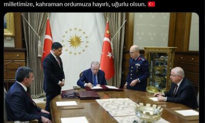 Cumhurbaşkanı Erdoğan, sosyal medya hesabından yaptığı paylaşımda, “Yüksek Askeri Şura toplantısında aldığımız kararlar ülkemize, milletimize, kahraman ordumuza hayırlı uğurlu olsun” ifadelerini kullandı.