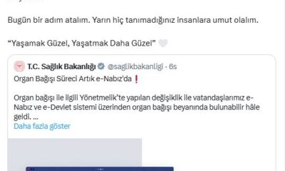 Sağlık Bakanı Kemal Memişoğlu, sosyal medya hesabından yaptığı paylaşımda, “’Her Bağış Yeni Bir Hayattır diyerek organ bağışı sürecini çok daha kolay hale getirdik. Vatandaşlarımız artık hem...