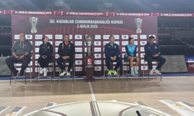 Ankara Spor Salonu’nda 3 Aralık Çarşamba günü oynanacak olan ‘30’uncu Kadınlar Cumhurbaşkanlığı Kupası’ finali öncesi Fenerbahçe Opet Başantrenörü Miguel Mendez ve ÇİMSA ÇBK Mersin Başantrenörü George...