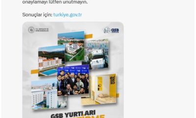 Gençlik ve Spor Bakanı Osman Aşkın Bak, sosyal medyadan yaptığı açıklamada, “Sevgili gençler, GSB yurtları yerleştirme sonuçları açıklandı. Hepinize hayırlı olsun. Yurdunuza, yuvanıza hoş geldiniz. 13...
